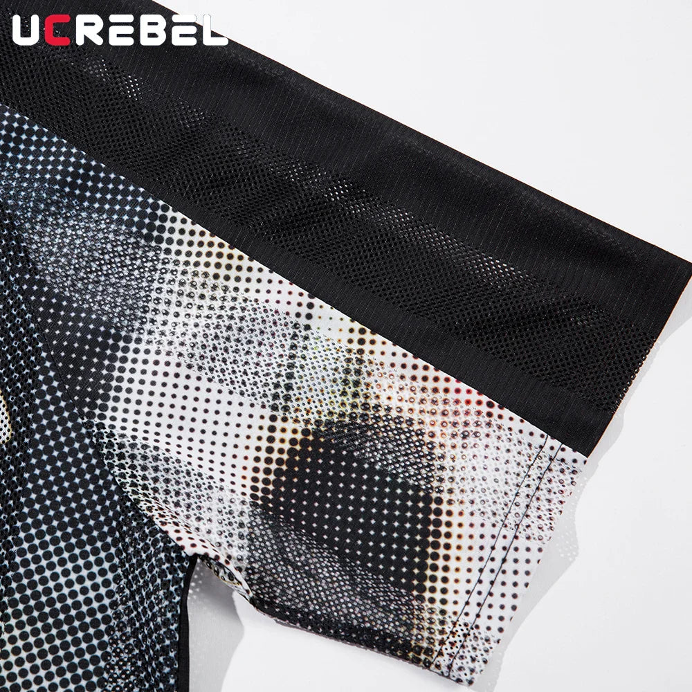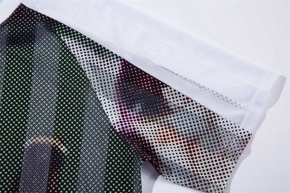 Cat Print Short Sleeve T-shirt Mens Summer Retro High Street Loose Raglan Half-Sleeve V-neck Breathable Mesh Tshirt Men